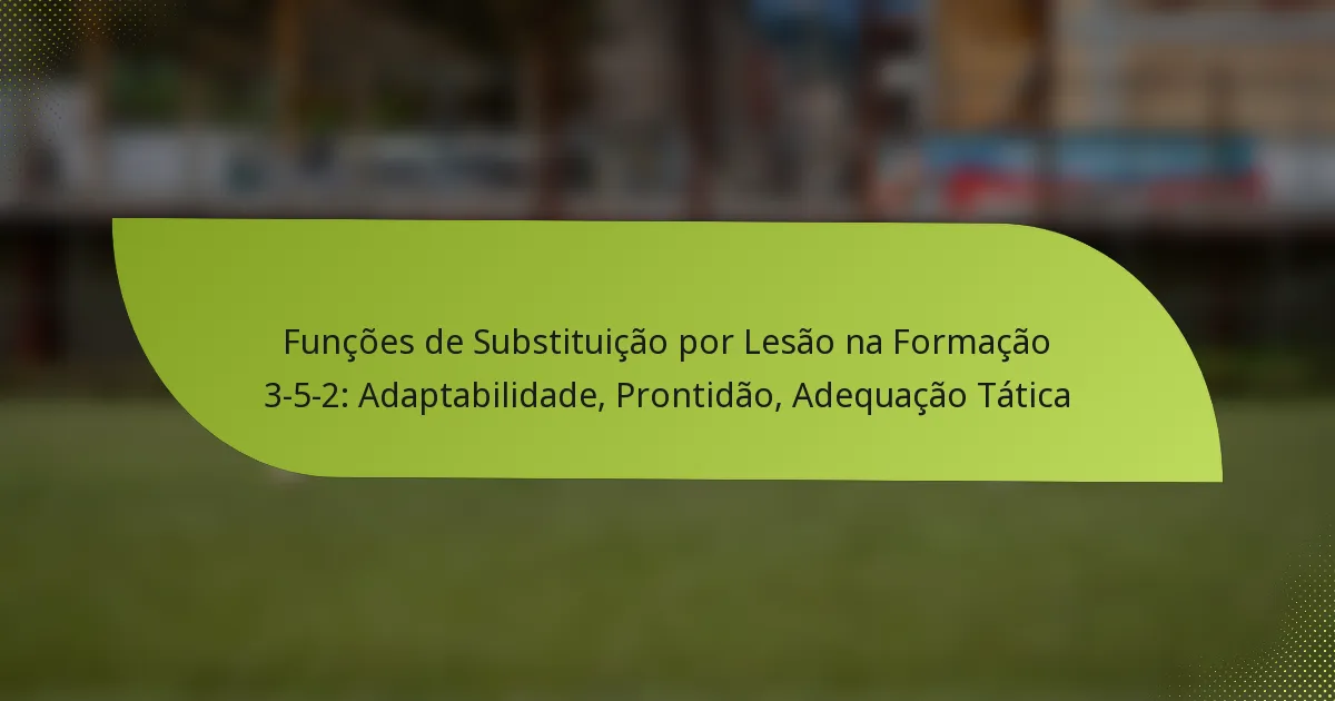 Na formação 3-5-2, os papéis de substituição por lesão são essenciais para sustentar a dinâmica e o desempenho da equipa quando jogadores-chave estão indisponíveis. Substitutos eficazes devem possuir a adaptabilidade e o entendimento tático para se integrar perfeitamente na estrutura existente, garantindo que a estratégia da equipa permaneça coesa. Ao aproveitar a versatilidade dos jogadores e melhorar a comunicação, as equipas podem enfrentar os desafios impostos pelas lesões enquanto mantêm a sua vantagem competitiva. Quais são os papéis de substituição por lesão na formação 3-5-2? Na formação 3-5-2, os papéis de substituição por lesão são críticos para manter o desempenho…