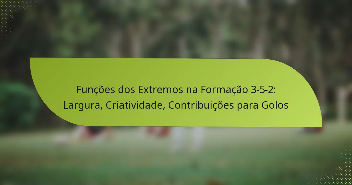 Na formação 3-5-2, os avançados laterais são essenciais para proporcionar largura, criatividade e contribuições para golos. Posicionados nas alas, esticam a defesa adversária e criam espaço para os colegas de equipa, enquanto equilibram as suas responsabilidades ofensivas e defensivas. O seu movimento dinâmico e as suas capacidades de criação de jogo são fundamentais para melhorar o ataque da equipa e quebrar defesas de forma eficaz. Quais são os principais papéis dos avançados laterais na formação 3-5-2? Os avançados laterais na formação 3-5-2 desempenham um papel crucial ao fornecer largura, criatividade e contribuições para golos. Eles operam principalmente nas alas, equilibrando…