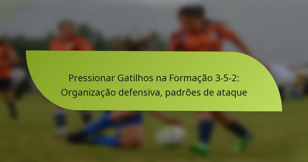 A formação 3-5-2 é uma configuração tática no futebol que combina três defensores centrais, cinco médios e dois avançados, oferecendo um equilíbrio entre força defensiva e opções de ataque. Os gatilhos de pressão eficazes dentro desta formação são essenciais para manter a organização defensiva e permitir transições rápidas para o ataque, uma vez que ditam quando os jogadores devem aplicar pressão coletivamente para recuperar a posse. Compreender esses gatilhos permite que as equipas otimizem as suas estratégias defensivas enquanto maximizam as oportunidades ofensivas. O que é a formação 3-5-2 no futebol? A formação 3-5-2 é uma configuração tática no futebol…