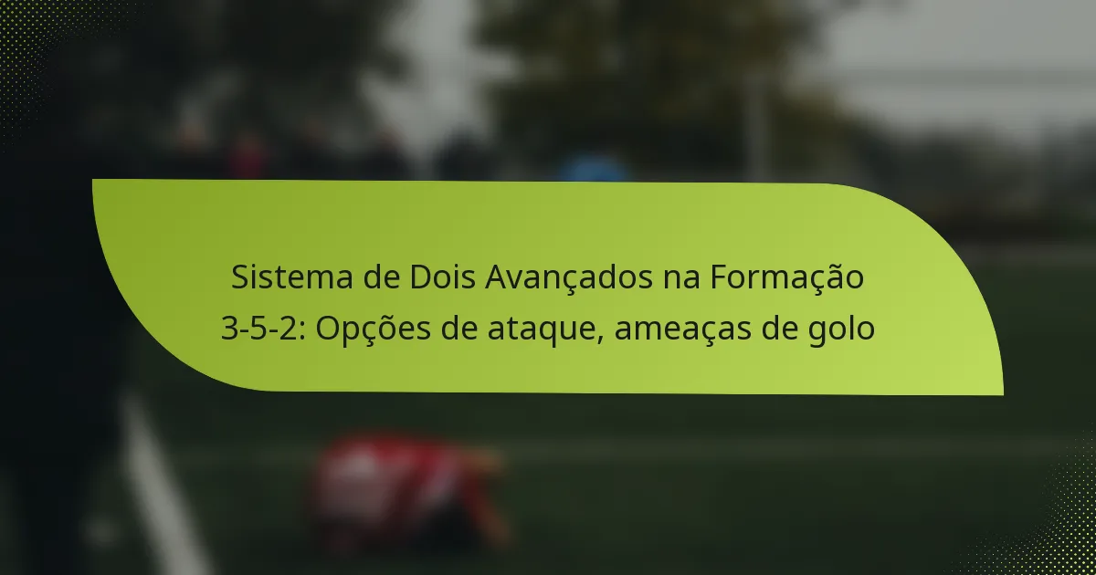O sistema de dois avançados na formação 3-5-2 é projetado para maximizar o potencial ofensivo, permitindo que dois avançados colaborem de perto para gerar oportunidades de golo. Esta configuração tática não só aumenta a pressão ofensiva, mas também cria múltiplas ameaças de golo, tornando difícil para as defesas adversárias marcarem eficazmente os jogadores e cobrirem as lacunas na sua estrutura. O que é o sistema de dois avançados na formação 3-5-2? O sistema de dois avançados na formação 3-5-2 apresenta dois avançados a trabalhar juntos para criar oportunidades de golo. Esta configuração enfatiza a pressão ofensiva e pode explorar as…